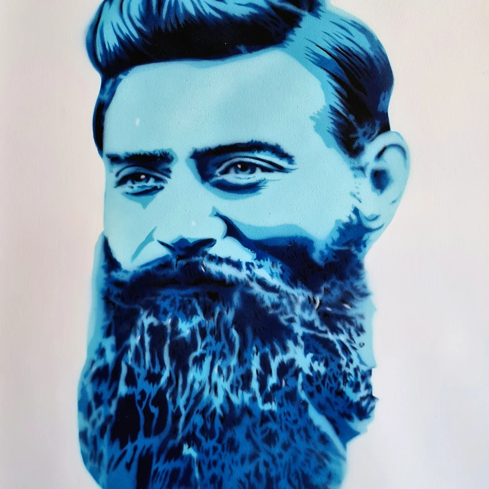 Street Art Bushranger explores Australian popular culture through the work of street artist HA-HA. Using intricate hand-cut stencil techniques, the artist draws on imagery from mass media to reflect on contemporary obsessions with celebrity, crime, sport and instant fame. The exhibition connects strongly to Benalla through HA-HA’s portrait of Ned Kelly, linking the outlaw’s legacy to the rebellious nature of street art, while also incorporating augmented reality and sound-based works that expand the stencil practice into new media.