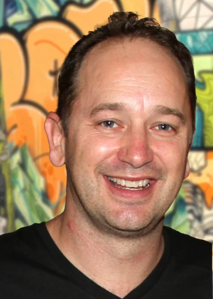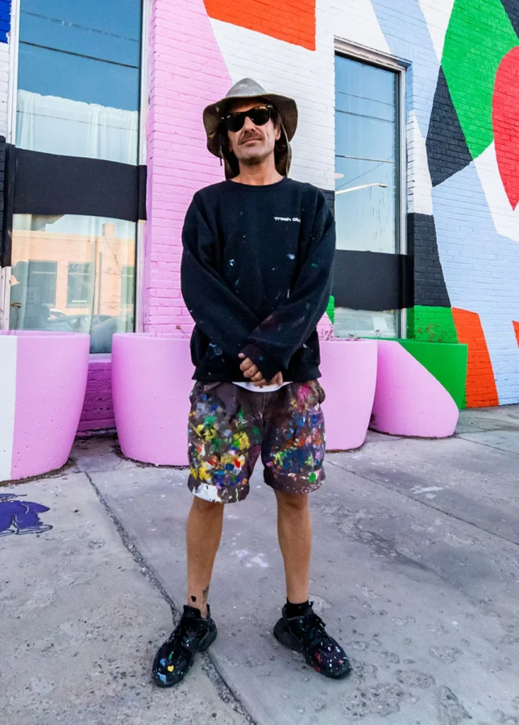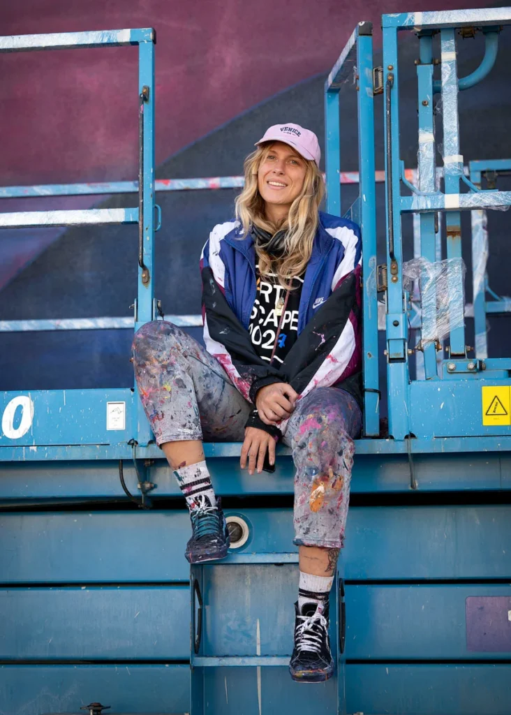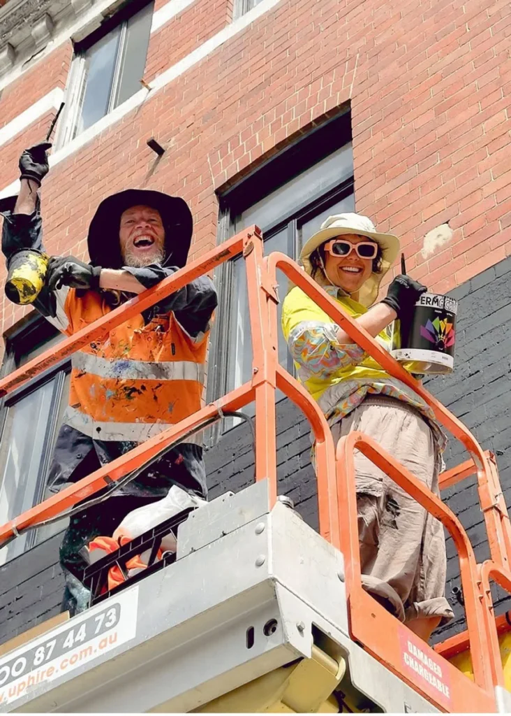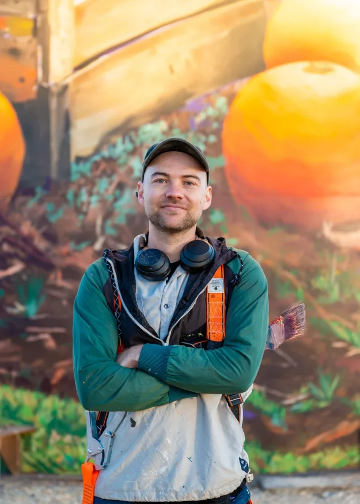 David ‘MEGGS’ Hooke is a muralist, street and fine artist recognised for his large-scale murals, detailed paintings and sculptures that combine elements of urban decay and natural landscapes with bold colour scapes and abstraction. MEGGS is an established mural and gallery artist with 20+ years of experience creating dynamic large-scale works inspired by his travels and experiences. MEGGS’ art practice is an ongoing exploration of self-growth and a reflection on humanities relationship and impact with our natural environment and resources. His artwork evokes a sense of constant movement and change, inspired by the cycles and duality of consumerism vs sustainability and natural growth and decay.